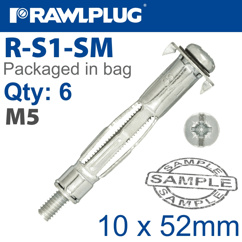 RAWLPLUG Interset Cavity Fixing M5X52Mm X6-Bag