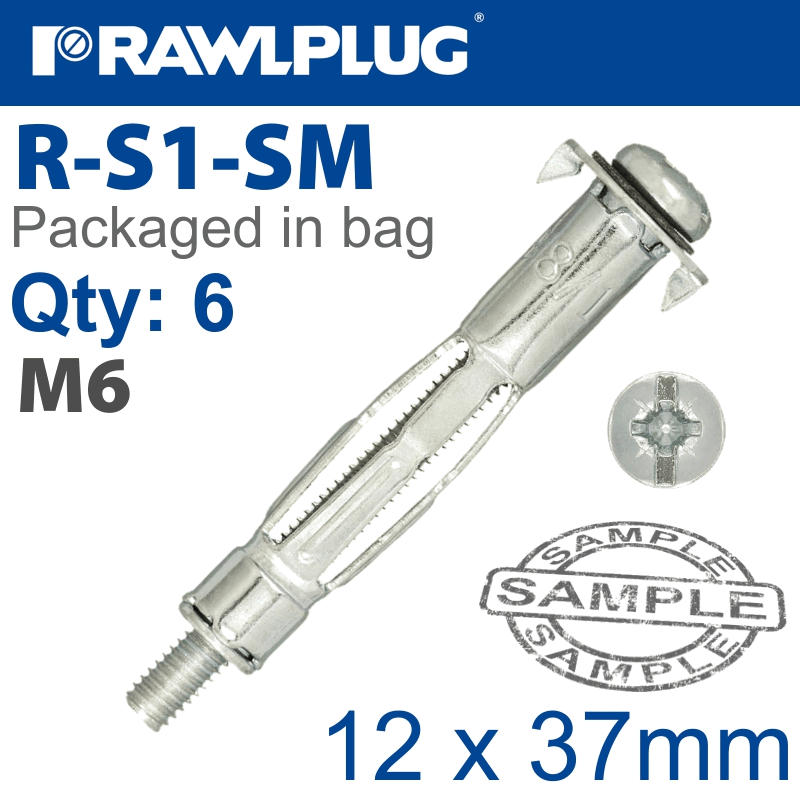 RAWLPLUG Interset Cavity Fixing M6X37Mm X6-Bag