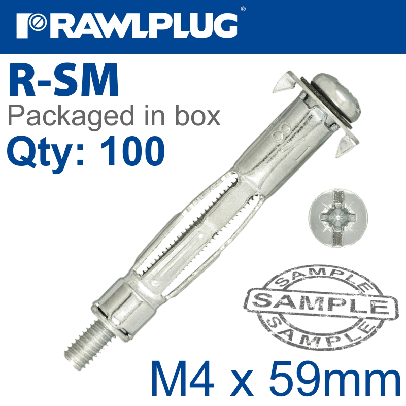RAWLPLUG Interset Fixing For Drywall M4X59Mm X100-Box 8Mm Drill
