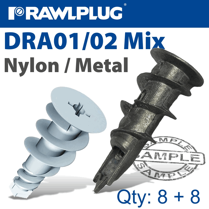 RAWLPLUG Self Drill Drywall Fixings Mixed Bag 8:8 X6 Nyl X6 Metal