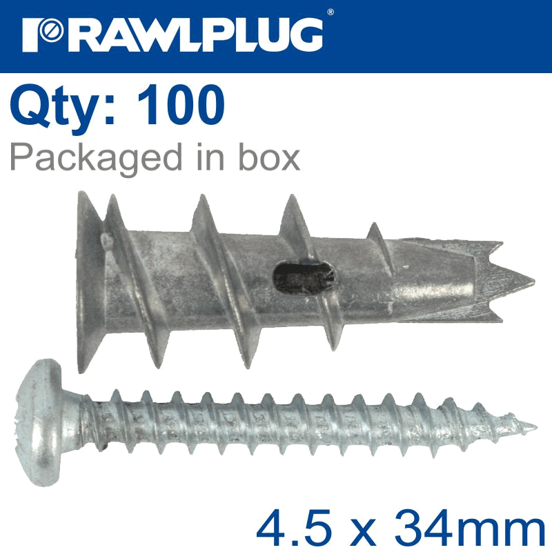 RAWLPLUG Self Drill Plasterboard With Screw 100 Psc Per Tub