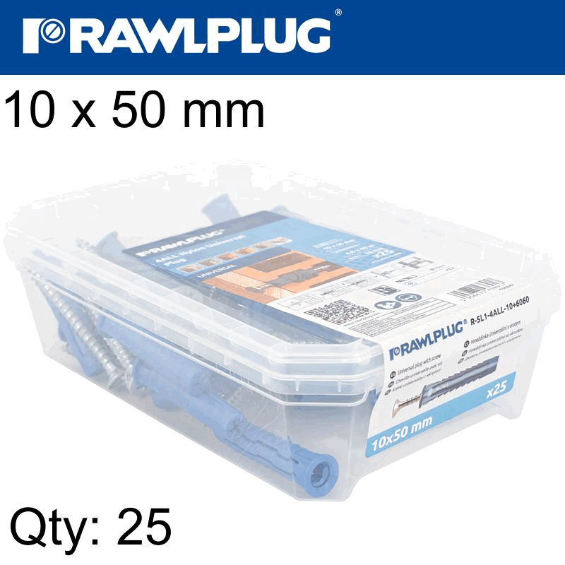 RAWLPLUG Universal Plug 4All 10 X 50Mm With Screw 25 Psc Per Tub