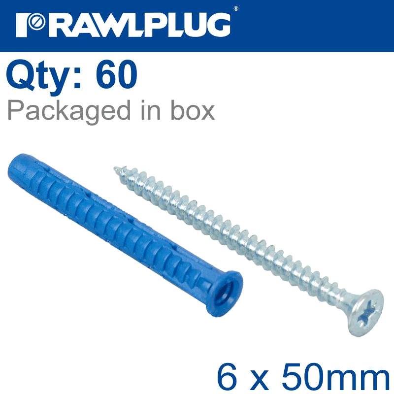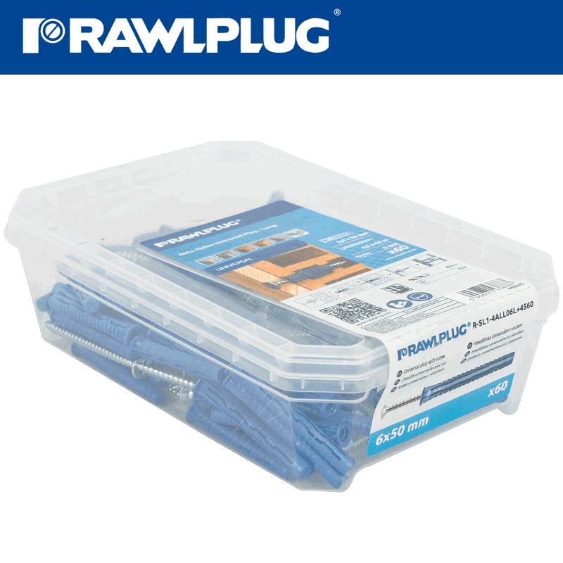 RAWLPLUG Universal Plug 4All 6 X 50Mm With Screw 60 Psc Per Tub