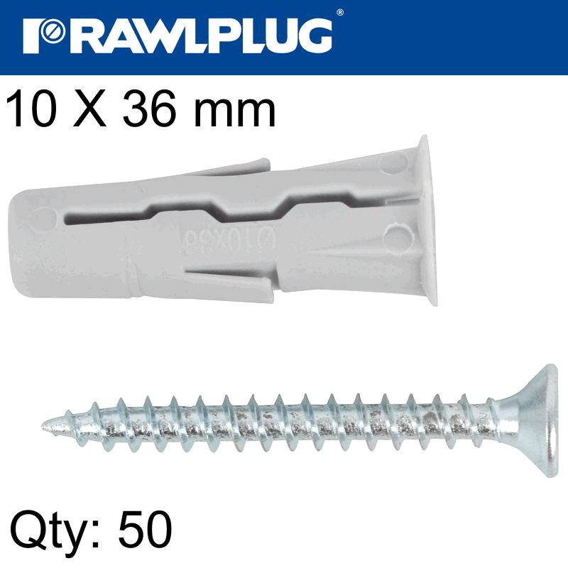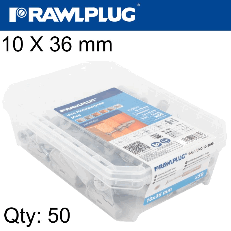RAWLPLUG Universal Plug Uno 10 X 36Mm With Screw 50 Psc Per Tub