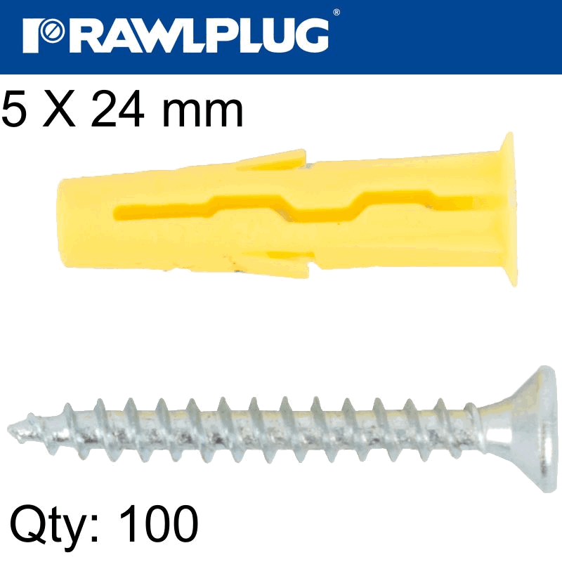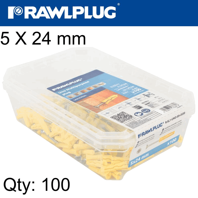RAWLPLUG Universal Plug Uno 5 X 24Mm With Screw 100 Psc Per Tub