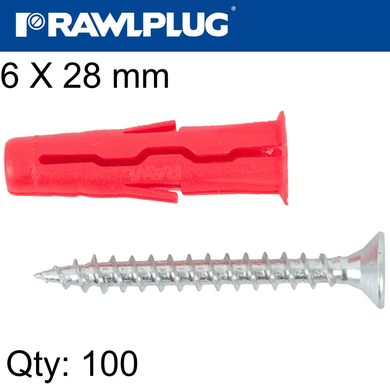 RAWLPLUG Universal Plug Uno 6 X 28Mm With Screw 100 Psc Per Tub