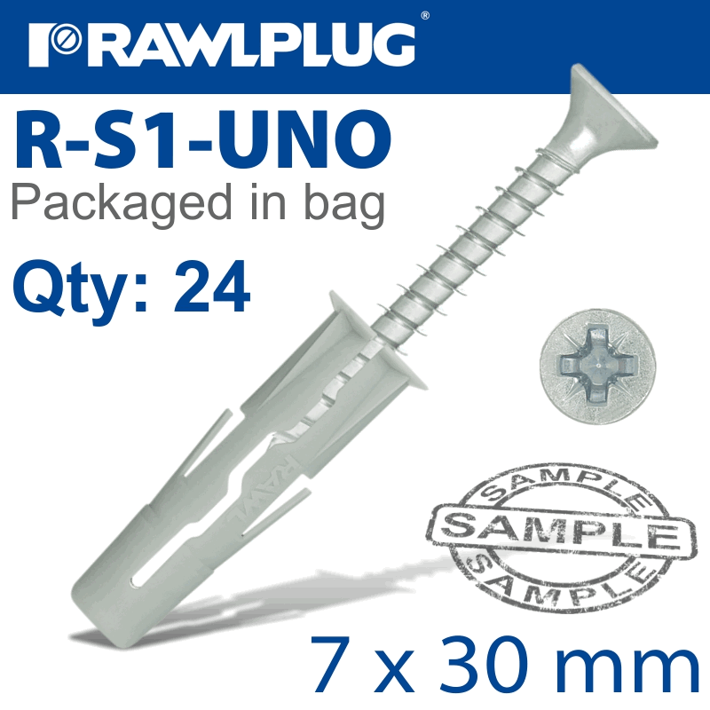 RAWLPLUG Universal Plug With Screw 7X30Mm 24 Per Bag