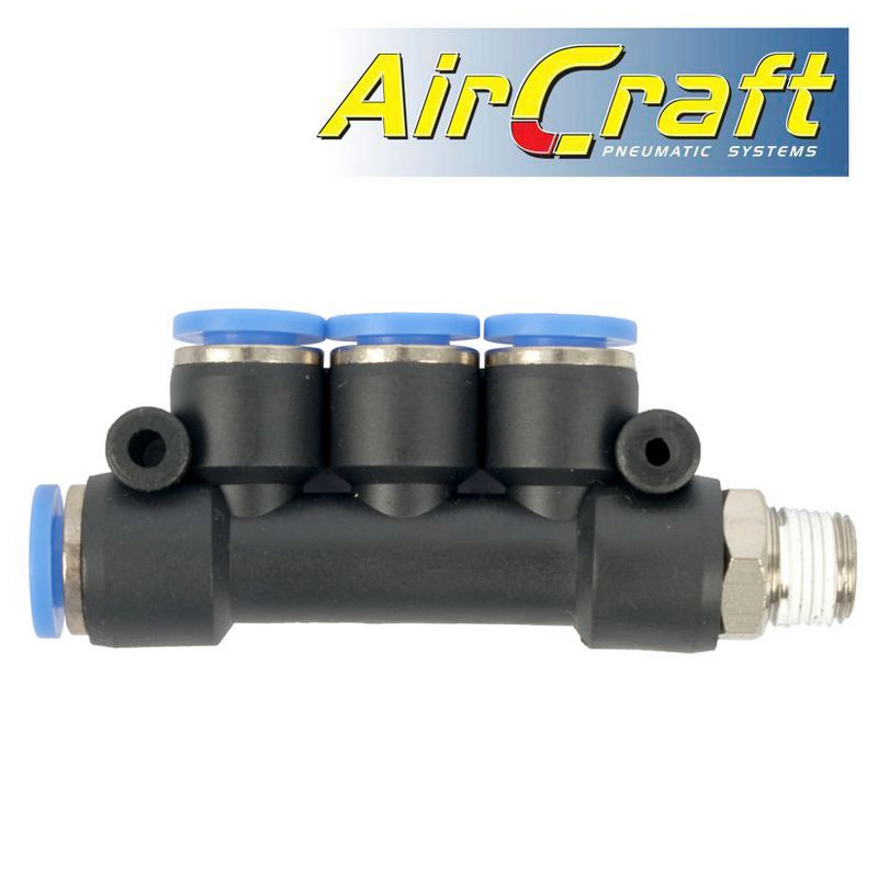 Pu Hose Fitting Manifold 4 X 6mm Port X 1/8"M