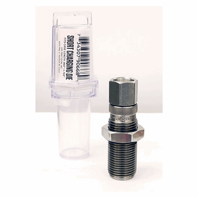Lee Short Charging Die is for use with the Lee Auto-Disk, Pro Auto-Disk and Auto-Drum Powder Measure.  Works with cases .860 to 1.760 inches long (22 Hornet to 223 Rem), and bullet diameter .223 and larger due to powder bridging.