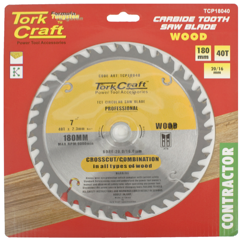 Tork Craft Blade Contractor 180 X 40t 20/16 Circular Saw Tct