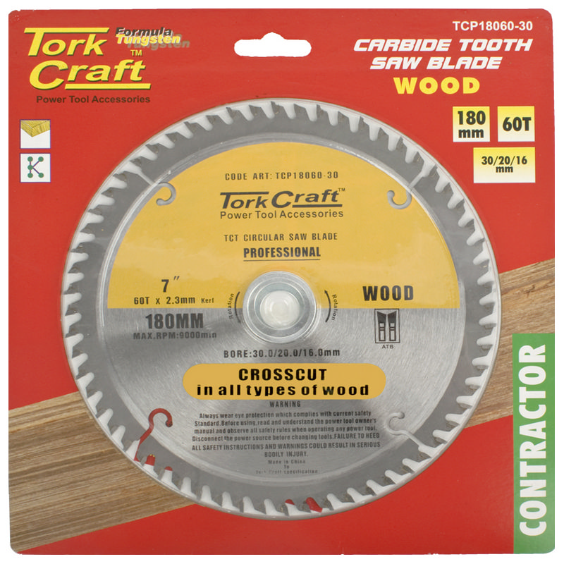 Tork Craft Blade Contractor 180 X 60t 30/20/16 Circular Saw Tct