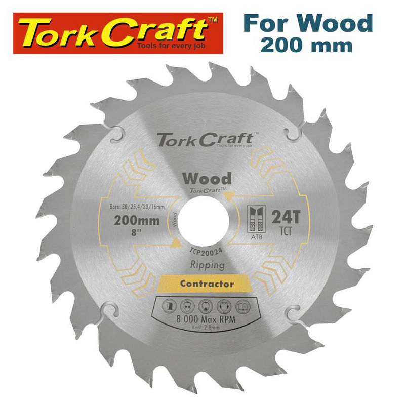 Tork Craft Blade Contractor 200 X 24t 30/1/20/16 Circular Saw Tct