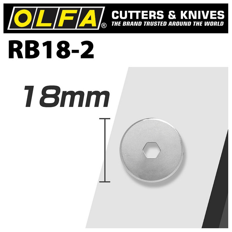 For use with the 18mm Rotary Cutter (RTY-4) and Rotary Circle Cutter (CMP-3). 2 blades per pack. (RB18-2)