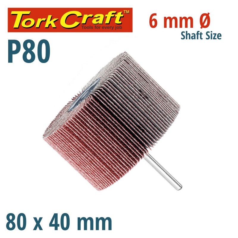 Tork Craft Flap Wheel 80 X 40 X 6mm Shaft 80 Grit Per Each (6 Per Box)