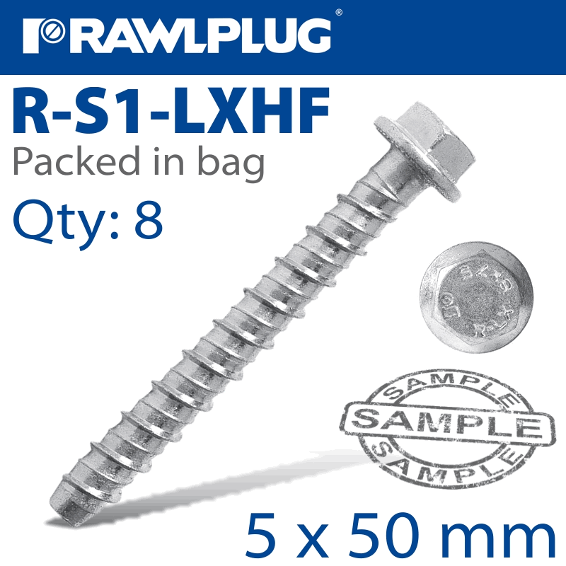 RAWLPLUG Concrete Screw Bolt 6.3X50 R-Lx Hex + Flange X8 -Bag