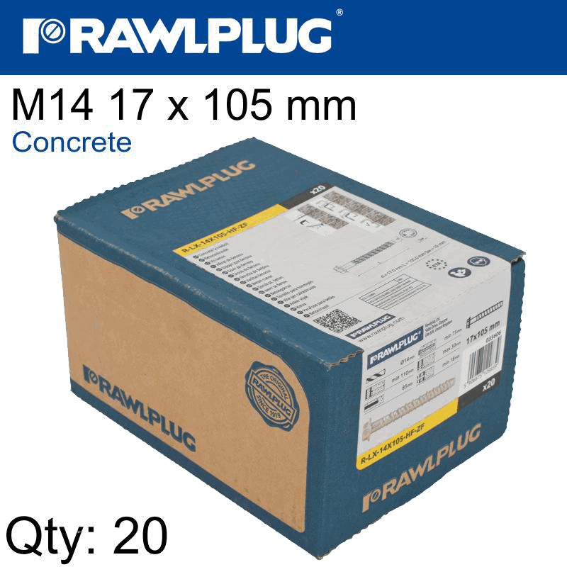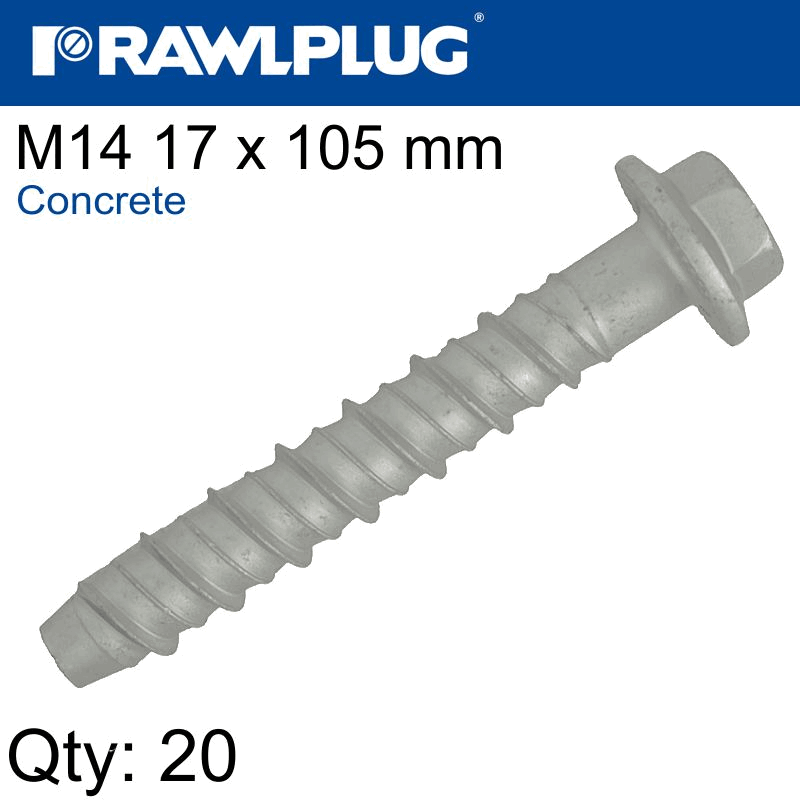 RAWLPLUG Concrete Screwbolt M14 17X105Mm Hex Flange Zinc Fl X20-Box