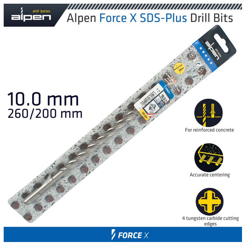 Alpen Force X 10.0 X 260/200 Sds-Plus Drill Bit X4 Cutting Edges