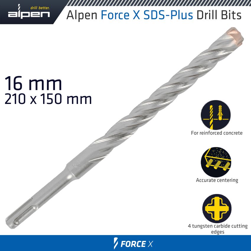 Alpen Force X 16.0 X 210/150 Sds-Plus Drill Bit X4 Cutting Edges
