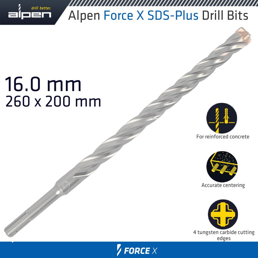 Alpen Force X 16.0 X 260/200 Sds-Plus Drill Bit X4 Cutting Edges