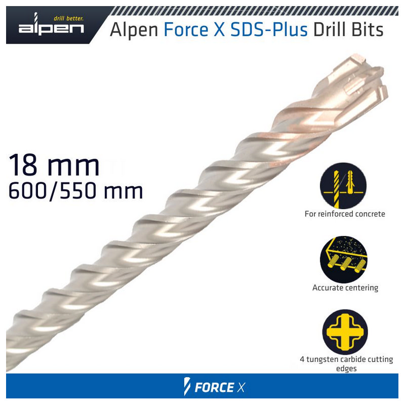 Alpen Force X 18.0 X 600/550 Sds-Plus Drill Bit X4 Cutting Edges