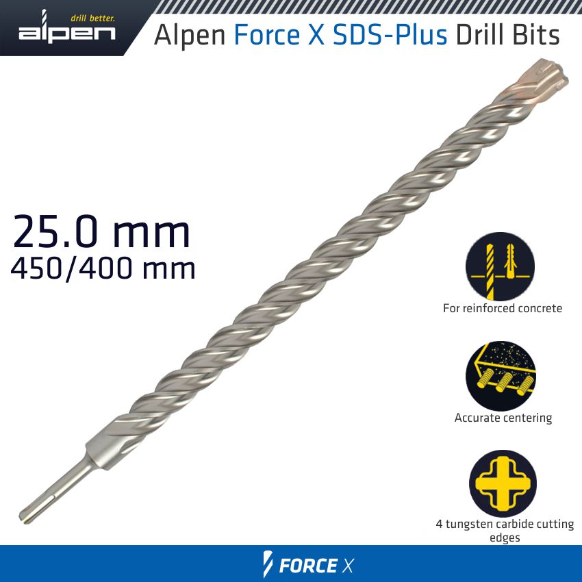 Alpen Force X 25.0 X 450/400 Sds-Plus Drill Bit X4 Cutting Edges