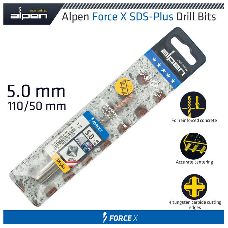 Alpen Force X 5.0 X 110/050 Sds-Plus Drill Bit X4 Cutting Edges