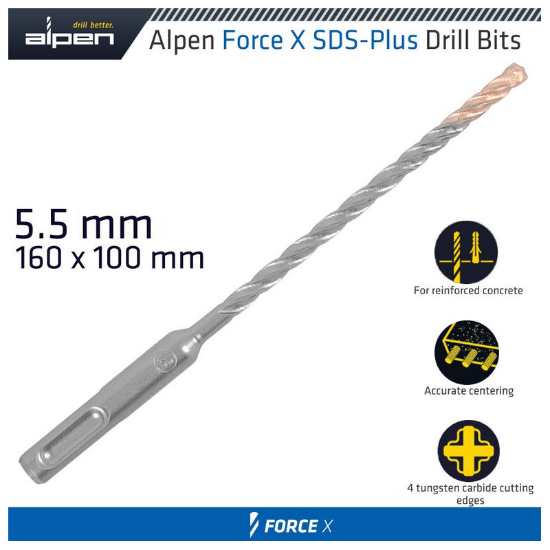 Alpen Force X 5.5 X 160/100 Sds-Plus Drill Bit X4 Cutting Edges