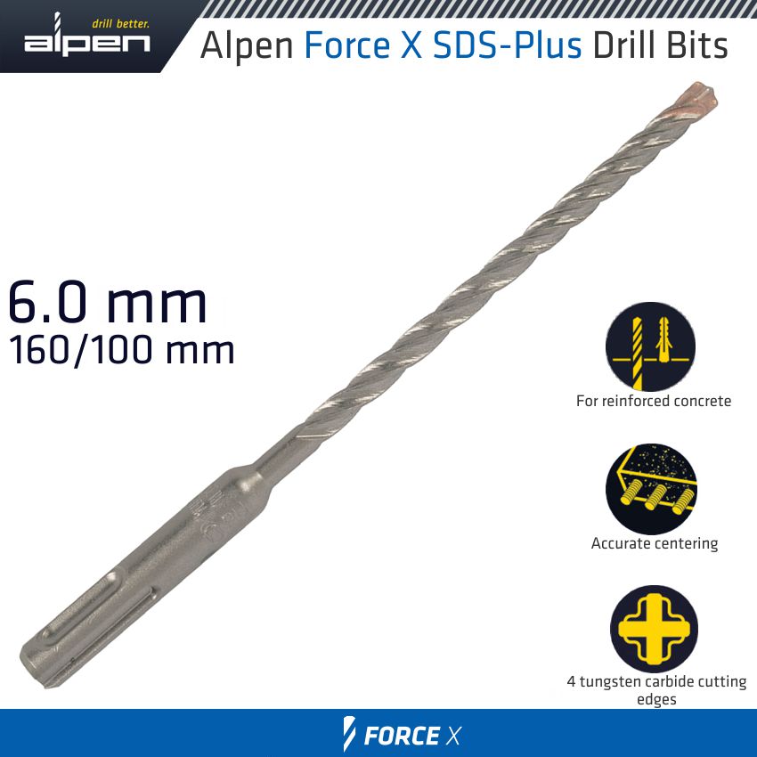 Alpen Force X 6.0 X 160/100 Sds-Plus Drill Bit X4 Cutting Edges - Bulk