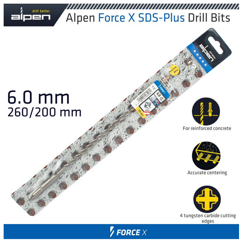 Alpen Force X 6.0 X 260/200 Sds-Plus Drill Bit X4 Cutting Edges