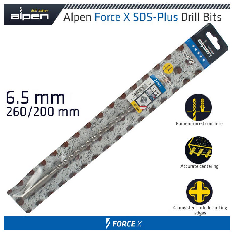 Alpen Force X 6.5 X 260/200 Sds-Plus Drill Bit X4 Cutting Edges