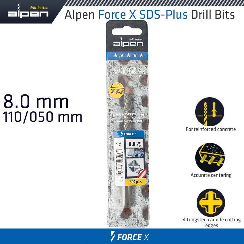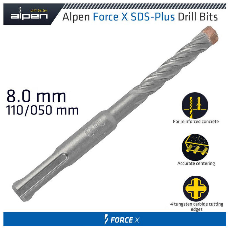Alpen Force X 8.0 X 110/050 Sds-Plus Drill Bit X4 Cutting Edges