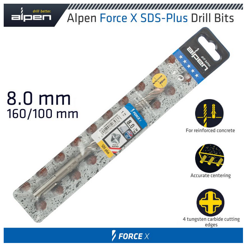 Alpen Force X 8.0 X 160/100 Sds-Plus Drill Bit X4 Cutting Edges