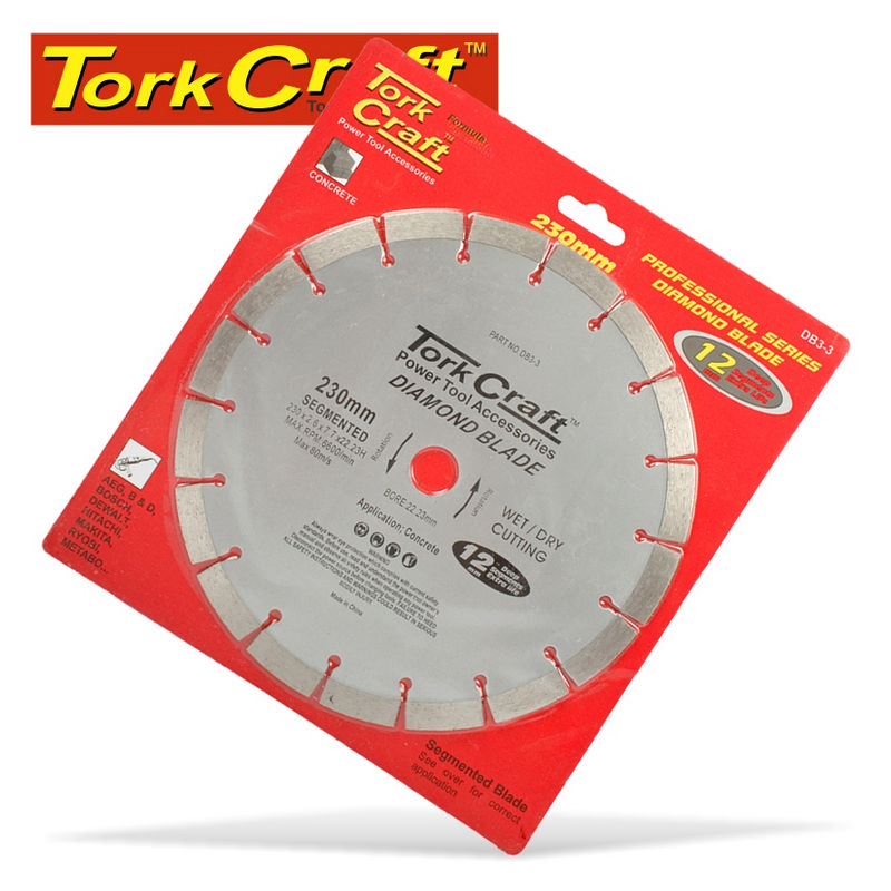 Tork Craft Diamond Blade Segmented 230mm For Concrete 12mm Deep Segments