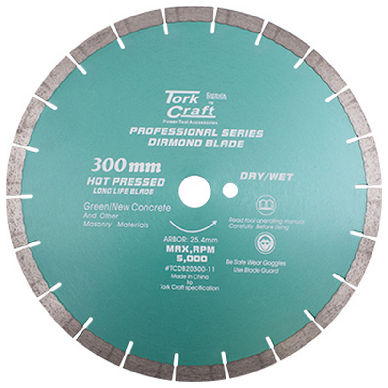 Tork Craft Diamond Blade 300 X 25.4mm Green / New Concrete Hot Pressed Segmented