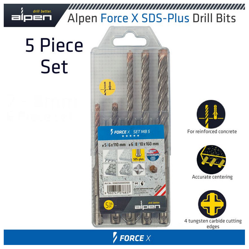 Alpen Force X Cassette Sds-Plus Set Mb5 5 Pcs. 5.0/ 6.0 Mm X 110 And 6.0/ 8.