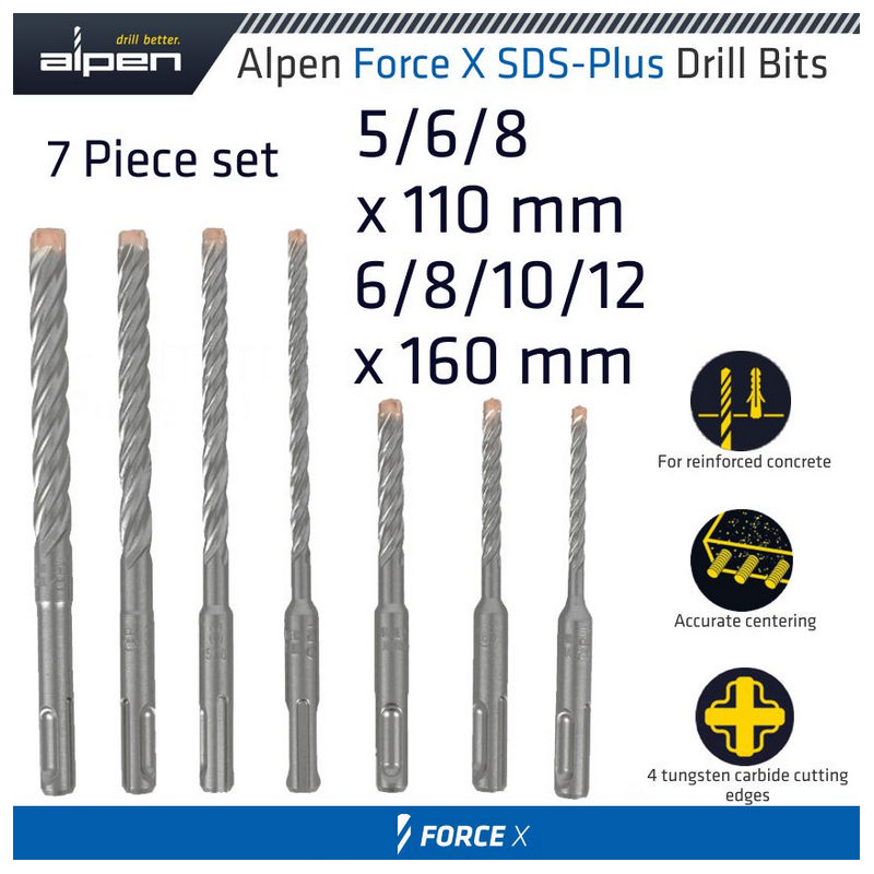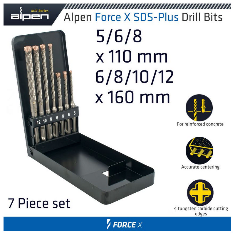 Alpen Force X Sds-Plus Set Km7 7 Pcs. 5.0/ 6.0/ 8.0 Mm X 110 And 6.0/ 8.0/ 1
