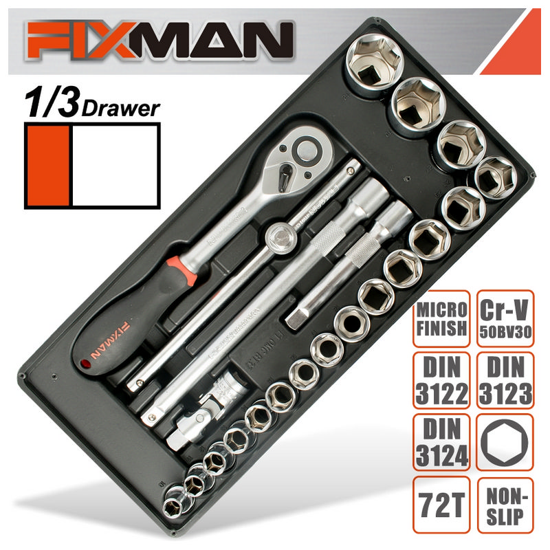 Fixman 22-Pc 1/2" Dr.Sockets & Accessories