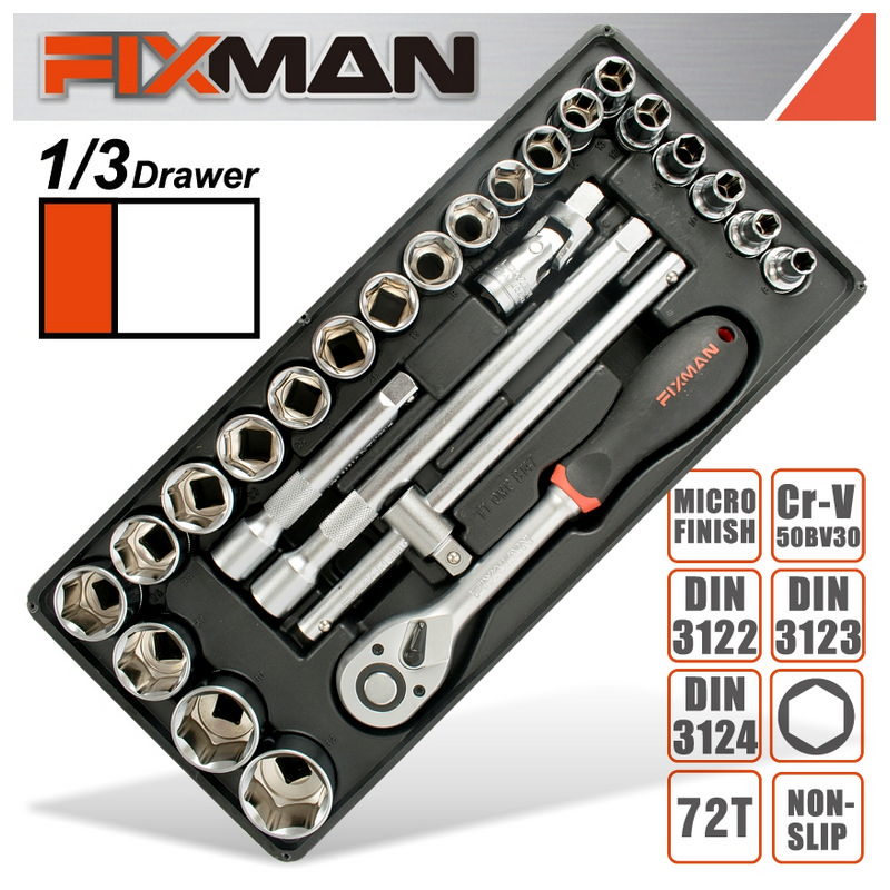 FIXMAN TRAY 26PC 1/2" DRIVE SOCKETS & ACCESSORIES