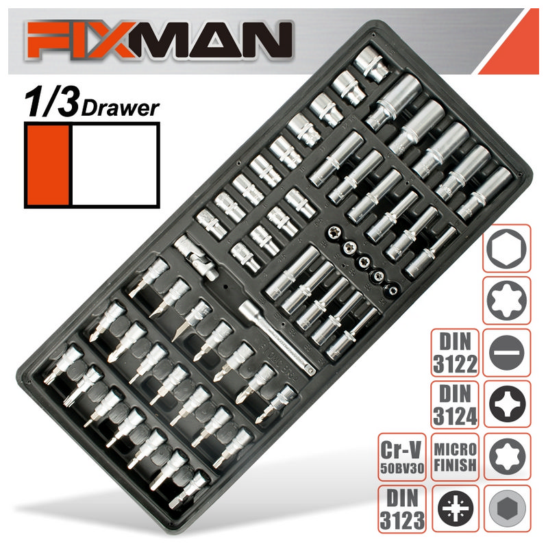 FIXMAN TRAY 57PC 1/4" DRIVE SOCKETS & ACCESSORIES