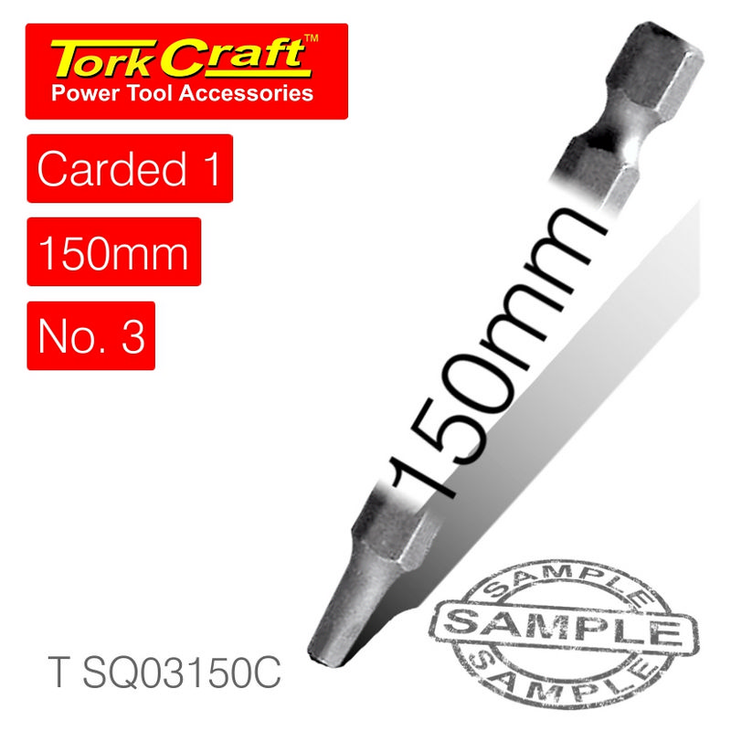 Tork Craft Square Recess Pwr Bit No.3x150mm 1/Card