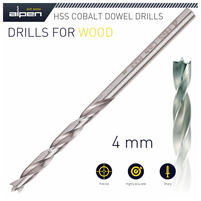 Alpen HSS Cobalt Wood Drill Bit 4mm