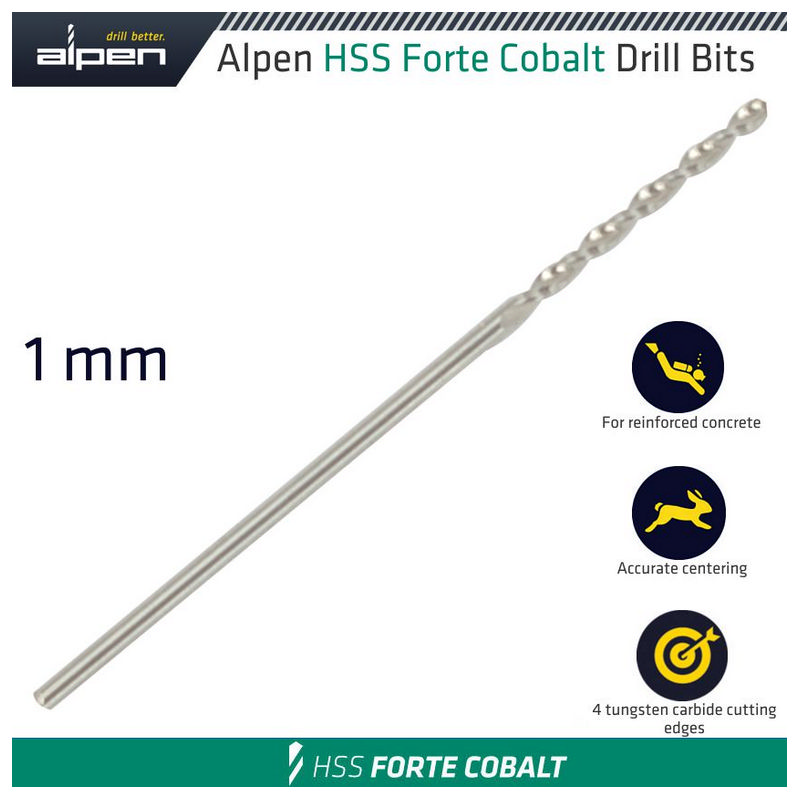 Alpen HSS Forte Cobalt Drill Bit 1mm