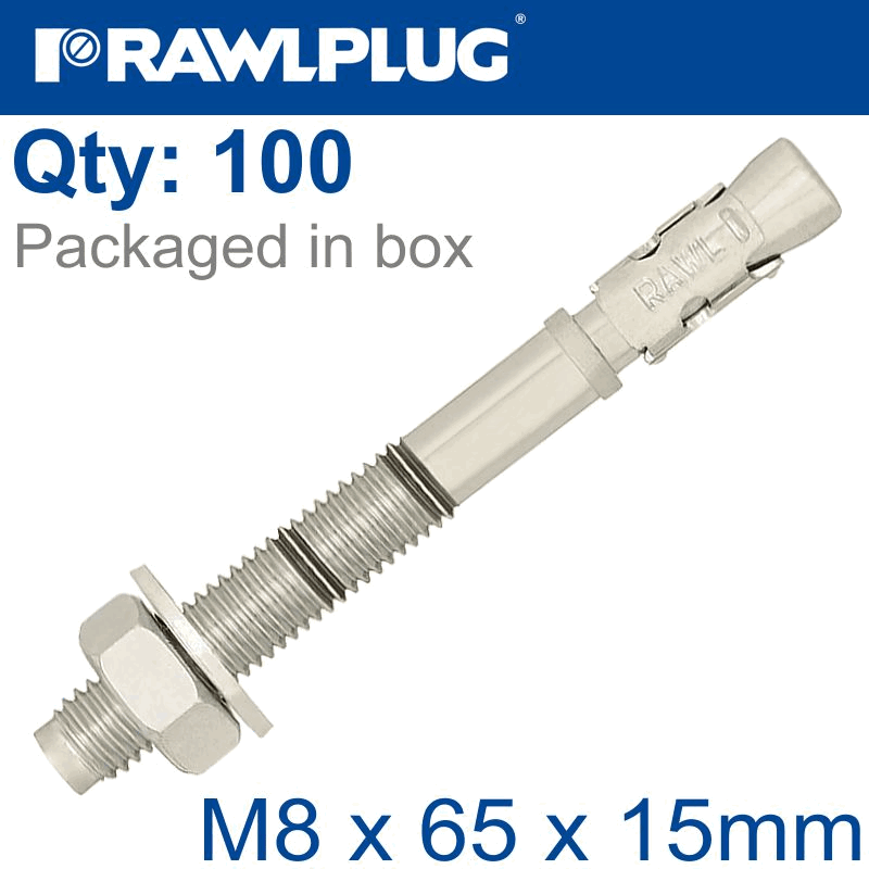 RAWLPLUG Throughbolt M8X65X15Mm X100 -Box