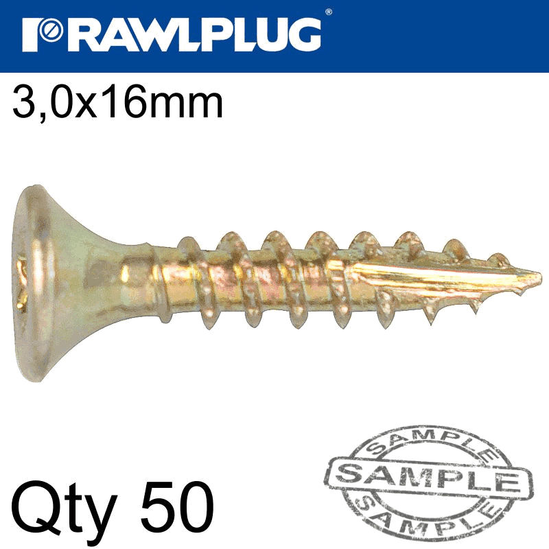 RAWLPLUG R-Ts Hardened Screw 3.0X16Mm X50 Per Bag