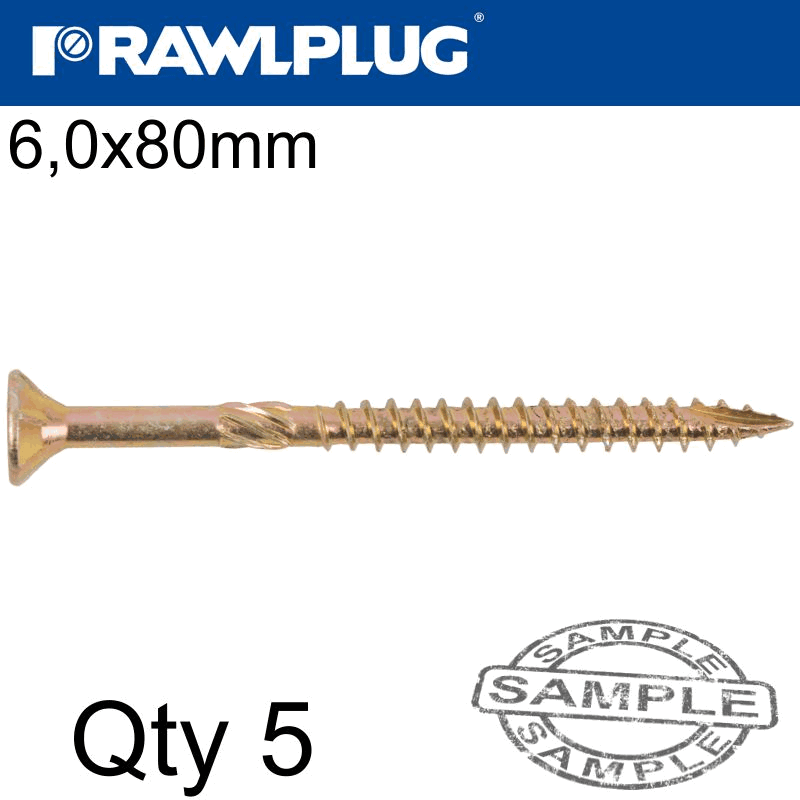 RAWLPLUG R-Ts Hardened Screw 6.0X80Mm X5 Per Bag
