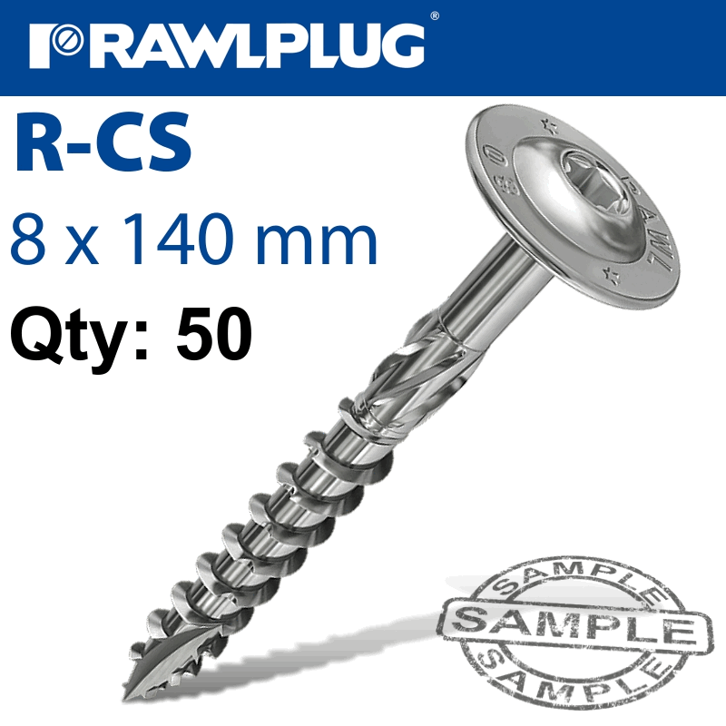 RAWLPLUG Timber Construction Screw 8.0 X 140Mm X 50-Box Torx T40