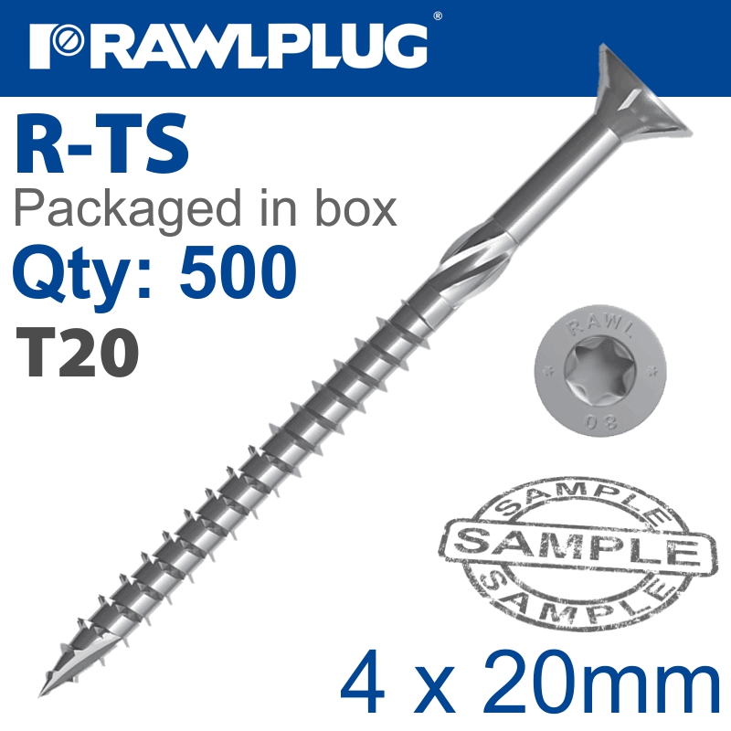 RAWLPLUG Torx T20 Chipboard Screw 4.0X20Mm X500-Box