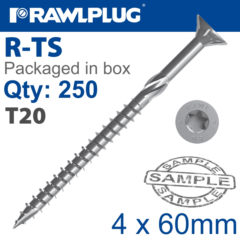 RAWLPLUG Torx T20 Chipboard Screw 4.0X60Mm X250-Box