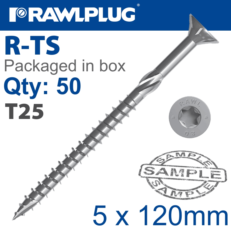 RAWLPLUG Torx T25 Chipboard Screw 5.0X120Mm X50-Box