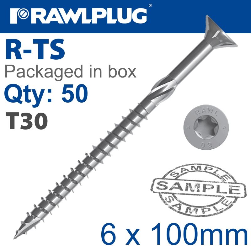 RAWLPLUG Torx T30 Chipboard Screw 6.0X100Mm X50-Box